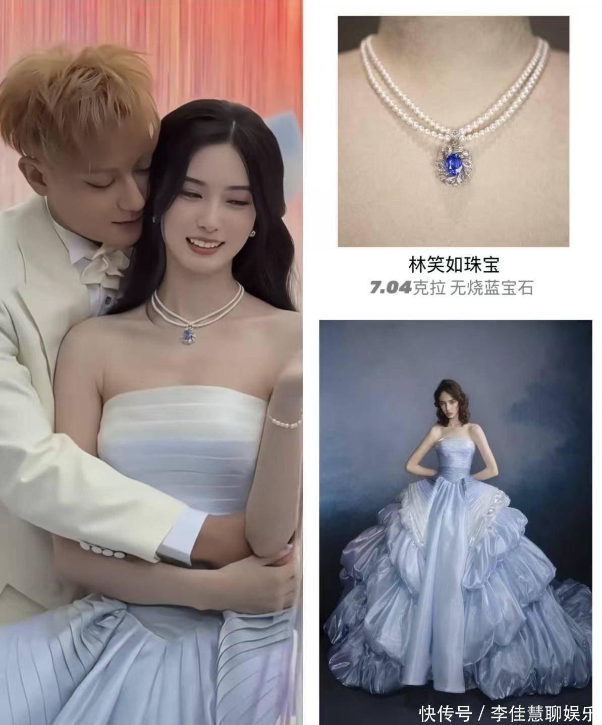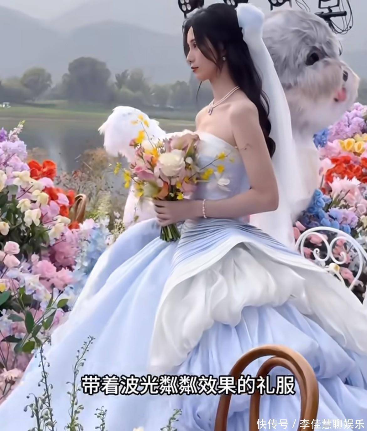 这一套是The Atelier2025也就是最新款的秋冬系列高定哦,这个颜色有没有感觉很梦幻?这套梦幻蓝色流光裙,徐艺洋穿上之后,就像是可爱的小公主!