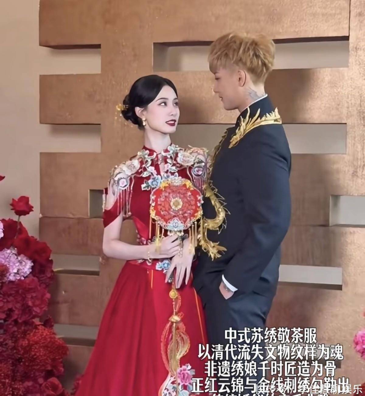 第四套就是著名婚纱设计师兰玉为徐艺洋定制的中式嫁衣!